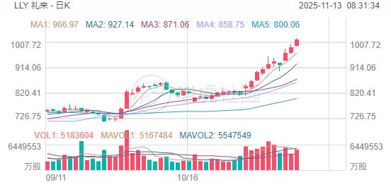 周三, 礼来涨超2.95%,收于1017.78美元/股,再创历史新高,市值逼近万亿美元大关!这家拥有147年历史的老牌药企,如今正以惊人的速度书写着新的财富传奇。
