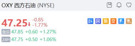 西方石油夜盘涨超1%,报道称伯克希尔正洽谈,100亿美元收购西方石油石化部门资产。
