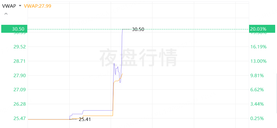 2月4日,美股夜盘时段,晶科能源直线拉升,现涨超20%。