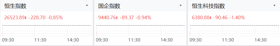 10月10日,港股三大指数低开,恒指跌0.85%,科指跌1.40%。