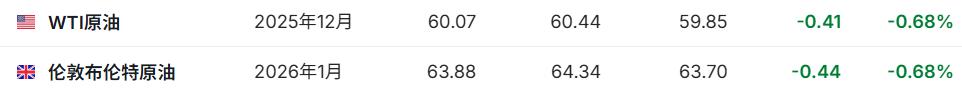 原油期货下跌,截止发稿,WTI原油跌0.68%,报60.07美元/桶;布伦特原油跌0.68%,报63.34美元/桶。
