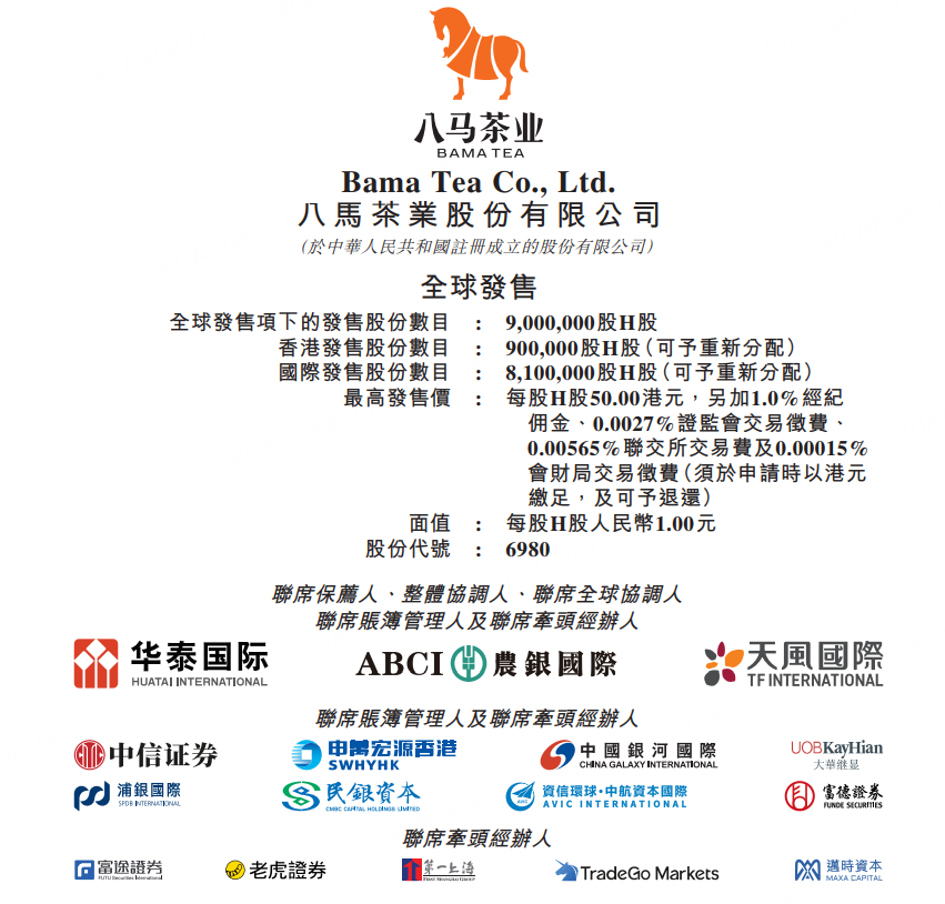 10月20日, 八马茶业发布公告,于10月20日-10月23日招股,公司拟全球发售约900万股股份,预期将于10月28日上市。