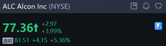 瑞士眼科护理巨头 Alcon Inc 盘前涨超5%。Alcon第三季度核心收益为每股摊薄收益0.79美元,低于一年前的0.81美元;季度净销售额为25.9亿美元,高于一年前的24.3亿美元。公司重申全年核心每股收益指导值为3.05至3.15美元。
