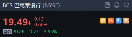 巴克莱银行 盘前涨近4%。巴克莱三季度税前溢利按年跌7%至20.77亿英镑,市场预期为21亿英镑。该行宣布5亿英镑股份回购,令市场感到意外,拟每季公布回购情况。