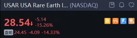 同时,关键矿产概念盘前普跌。 USA Rare Earth Inc. 大跌超14%, CRITICAL METALS CORPORATION 跌超12%, NioCorp Developments Ltd. 跌超10%, MP Materials Corp. 跌超6%。