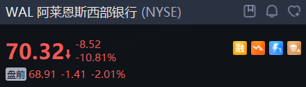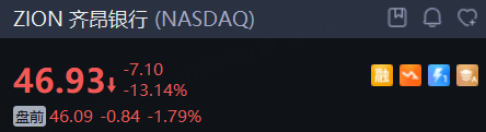 银行股盘前普跌。截至发稿,美国银行、花旗 跌超2%, 高盛、富国银行跌1.7%, 摩根士丹利 跌1.5%,摩根大通 跌1.3%。“爆雷”事件的主角 齐昂银行 跌1.8%, 阿莱恩斯西部银行 跌2%。