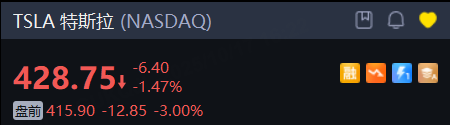 大型科技股盘前普跌。 特斯拉 跌3%, 英伟达 跌2.88%,谷歌跌2%,苹果跌0.6%。