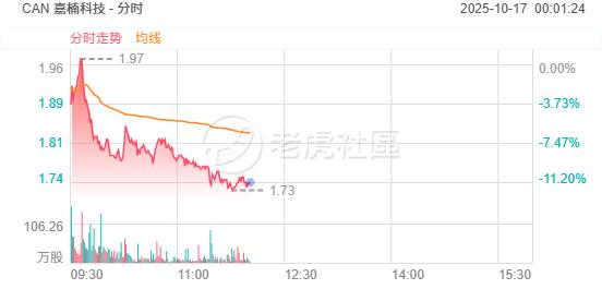 10月16日, 嘉楠科技 盘中大跌超11%。