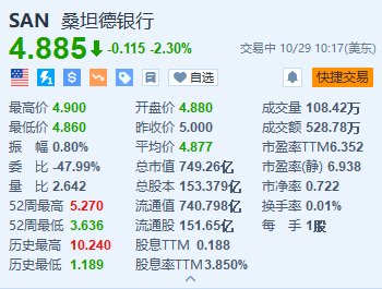 美股异动|桑坦德银行跌2.3% 预计英国集团Q3损失达11亿英镑