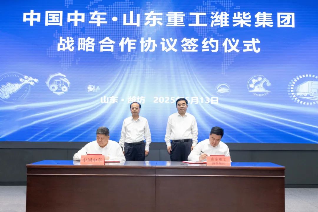 5月13日,山东重工潍柴集团与中国中车在潍坊签署战略合作协议。中国中车党委书记、董事长孙永才,山东重工党委书记、董事长满慎刚进行座谈交流并见证签约。山东重工党委委员、副总经理马常海参加活动。中国中车副总裁余卫平,潍柴集团党委副书记、副董事长王德成代表双方签约。