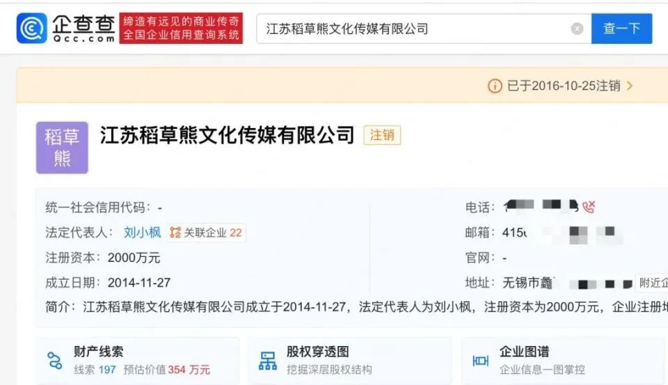 值得一提的是,江苏稻草熊文化传媒有限公司曾为刘诗诗与吴奇隆共同关联公司,吴奇隆在该公司担任董事长,刘诗诗间接持有该公司股份,不过该公司已于2016年10月注销。
