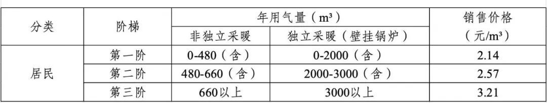 (一)执行居民气价的非居民用户(学校、幼儿园、婴幼儿照护机构教学和生活用气,社区康护、养老福利机构和城镇社区居委会等生活用气)2.16元/m⊃3;;