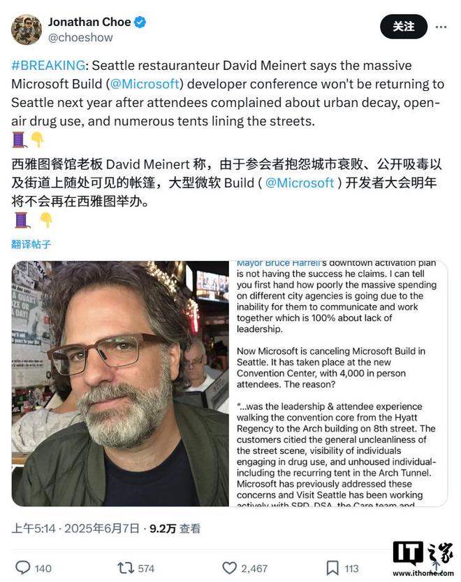 城市环境问题也被认为是另一个关键考量。IT之家从报道中获悉,上月的会议期间,微软管理层和嘉宾曾步行往返于 Hyatt Regency 与第八街的 Arch 大楼,当时有不少人反映沿途街区脏乱、有人公开吸毒,Arch 隧道中还反复出现露宿者的帐篷。Visit Seattle 认为,这些现象也影响了微软的决定。