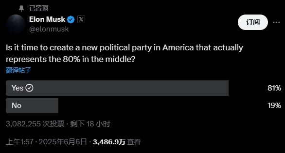 马斯克周四还在X上提议“组建一个代表美国80%中间派人士的新政党”,得到了云存储服务商Box的CEO亚伦·莱维(Aaron Levie)的支持。风险投资家、创业孵化公司Y Combinator的总裁加里·谭(Garry Tan)也回复道,应该优先追求“餐桌上的富足”,而不是“一堆骗人的胡扯、道德表演和文化战争”。
