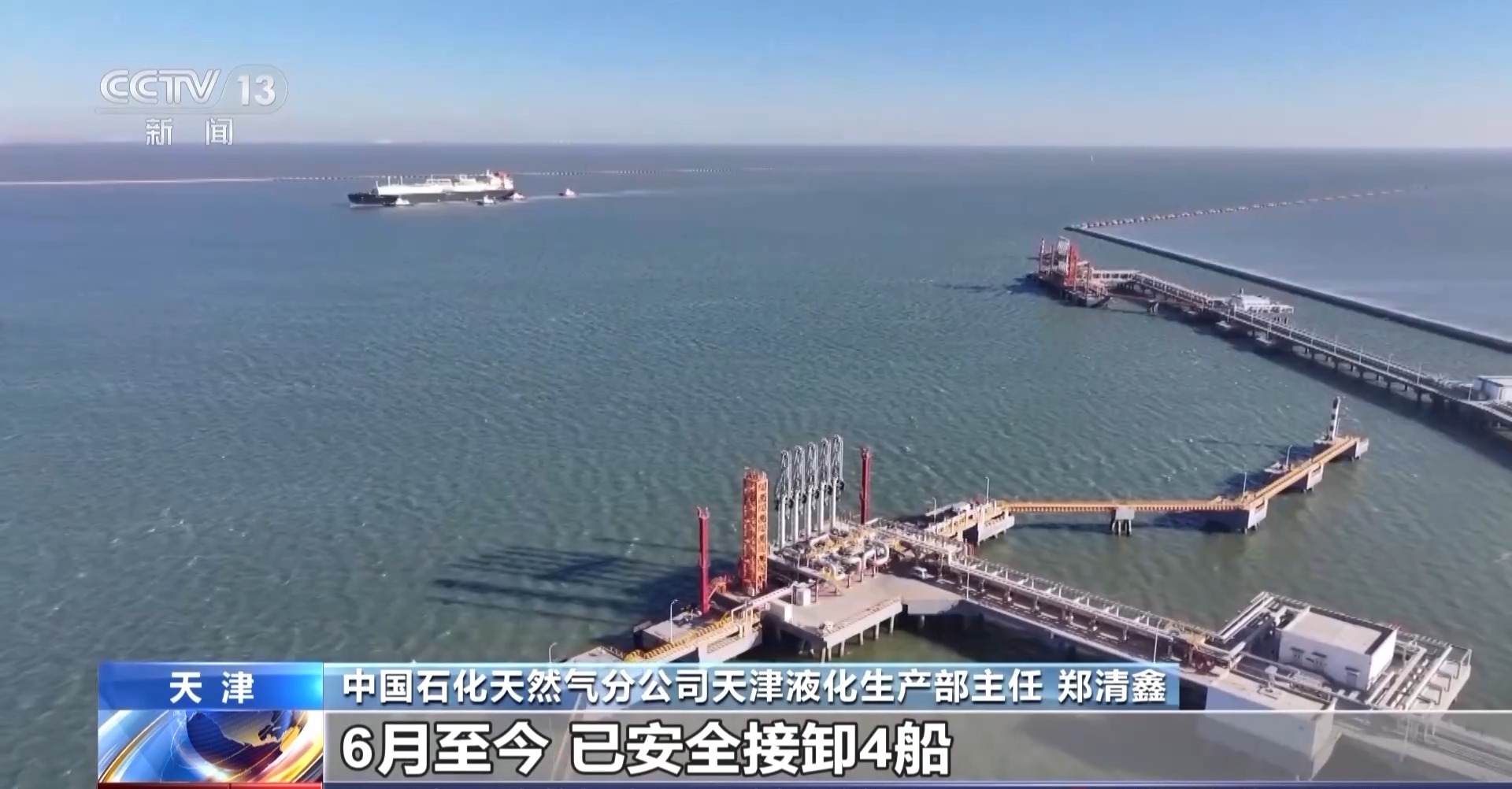 中国石化天然气分公司天津液化生产部主任 郑清鑫:我们不断优化船期衔接与港口调度,6月至今,已安全接卸4船共计30多万吨液化天然气,相当于4.2亿立方米天然气。