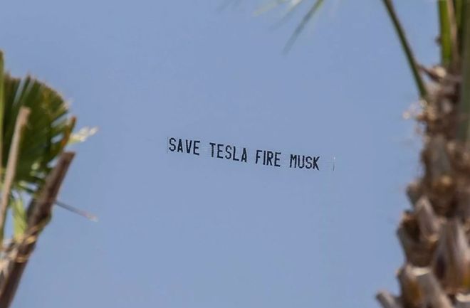 ▲海湖庄园上空的横幅“拯救特斯拉,解雇马斯克”