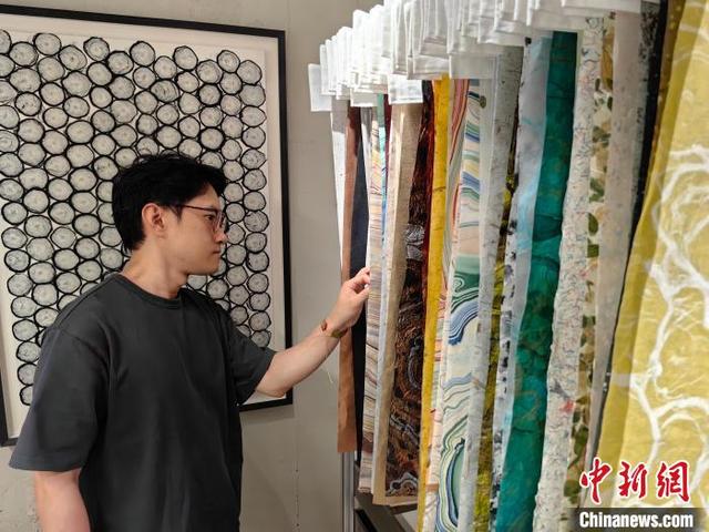 6月16日,汇丰纸行在上海福州路重新开业,一位顾客挑选印花纸张。 范宇斌 摄孙浚良表示,汇丰纸行不仅销售来自世界各地的纸,还与很多造纸厂合作,不断拓展纸张品种和应用场景。“未来,我们希望将这家沪上老字号开到海外,成为一家能够叙述‘中国纸’的纸行,并与当地的纸在造纸方式、印刷制作及供应链等方面不断交流,让‘中国纸’有更多的未来性,并发掘纸的更大意义。”