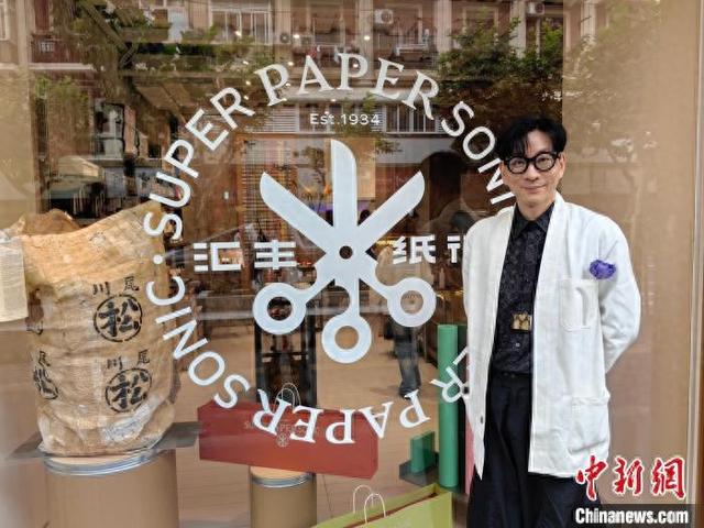6月16日,汇丰纸行在上海福州路重新开业,纸行主理人孙浚良接受中新社专访。 范宇斌 摄焕新后的汇丰纸行与沪上老字号“百新书局”相邻并连通,同时融合了咖啡、餐饮、展览等多种业态,打造全新的文化空间。