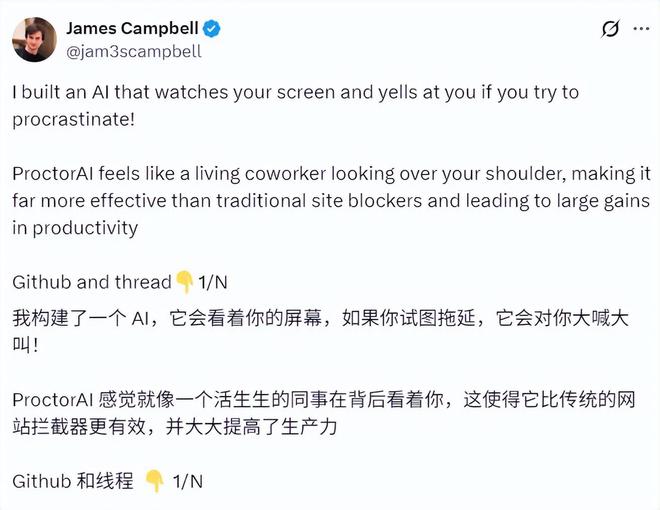 其中,ProctorAI 曾引发过广泛热议,该系统监视用户的屏幕,如果发现你有拖延,就会提醒你。它的工作原理是每隔几秒截取电脑屏幕截图,并输入到 Claude 3.5 Sonnet、GPT-4o、LLaVA 1.5 等多模态大模型中。如果发现用户注意力不集中,它会控制屏幕并用个性化消息提醒。