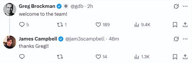 他的加入连 OpenAI 联合创始人、总裁 Greg Brockman 都表达了欢迎。