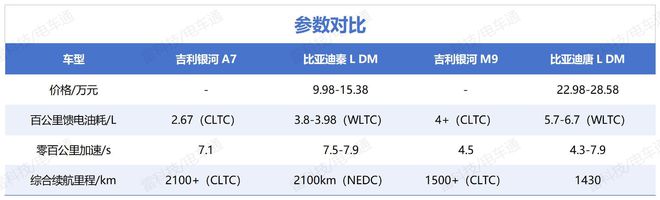结合已经公布的定位不难猜出,吉利银河 A7 和吉利银河 M9 叫板的车型是比亚迪秦 L 和比亚迪唐 L。