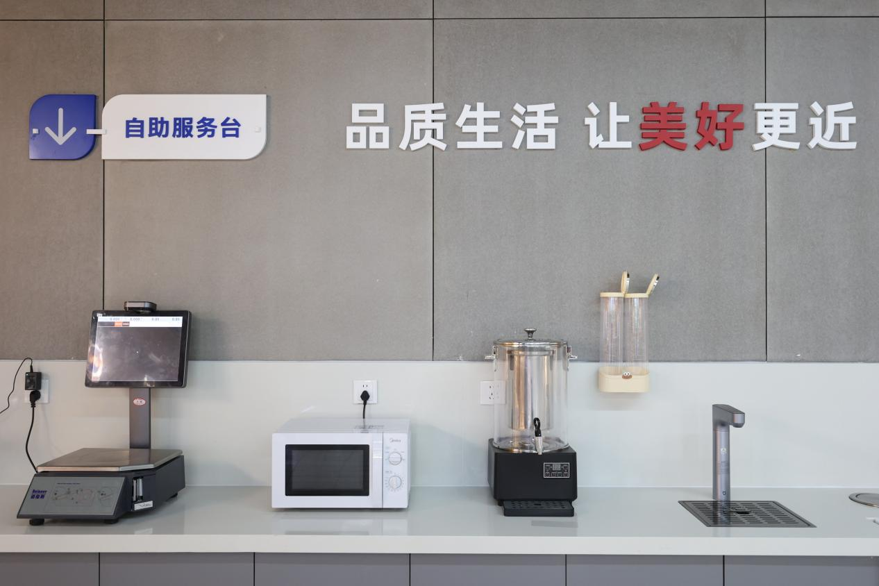 调改之后,大兴黄村店也在服务细节上全面升级。“一站式”便民服务区引入10余项免费服务:自助茶饮、非机动车充气、共享雨伞、应急药箱、手机加油站等;在门店休息区,顾客可自助测量血压、身高体重。