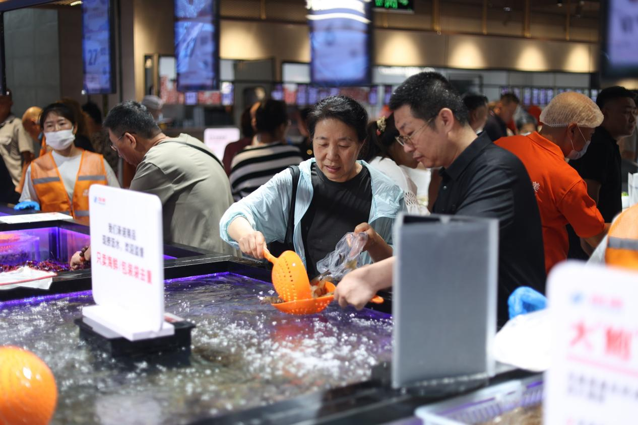 位处大兴黄村片区核心商圈,物美大兴黄村店紧邻居民区与地铁口,是许多周边居民的“菜篮子”。开业当天,不少本地居民特地前来打卡体验,门店内人头攒动,现制美食区、烘焙工坊、熟食档口香气四溢,营造出浓浓的烟火气氛围。