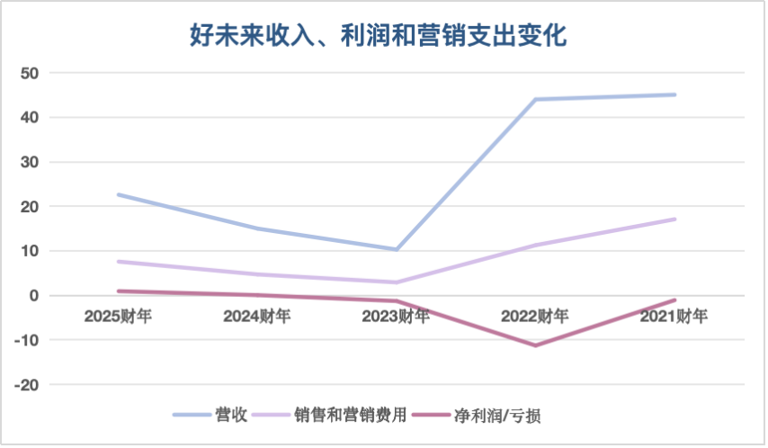 根据图上所示,好未来2024财年和2025财年的销售和营销费用再次开始持续攀升。值得一提的是,因为连续增加的销售费用,2025财年Q4,花费了四个季度换来的净利润再次转为了亏损状态。
