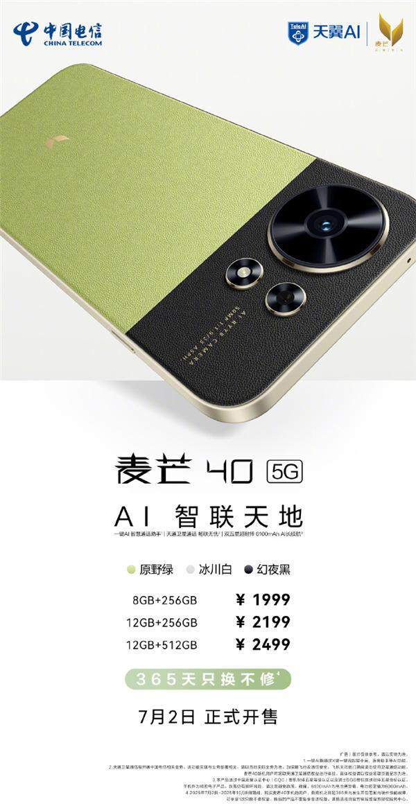 快科技7月2日消息,今日,中国电信自主品牌麦芒系列新机——麦芒40正式开售,售价1999元起,新机主打AI智能与普及卫星通信。