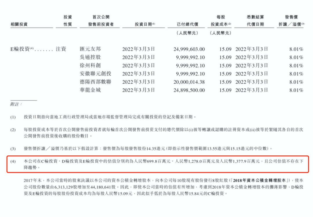 讯众通信2015年在新三板挂牌,此后进行了3轮配股和战略融资,累计融资5.4亿人民币,2022年3月最后一轮融资13.78亿人民币(约25亿港元),和本次IPO发行市值17.5亿港元相比,3年多时间估值上涨17%。