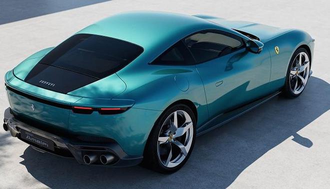 Amalfi延续Roma的Berlinetta造型比例,同时融入旗舰车型12C设计元素。前脸取消传统格栅,以悬浮式前翼整合传感器与大灯组,旁通通道优化空气动力学。侧面隐藏式门把手搭配20英寸轮毂,标配普利司通Potenza Sport或倍耐力P Zero高性能轮胎(前245/35 R20,后285/35 R20)。车尾保留四出排气,主动式扰流板可根据车速调节三档下压力模式。首发Verde Costiera蓝绿色车漆进一步强化辨识度。整车尺寸为4660×1974×1301毫米,轴距2670毫米。