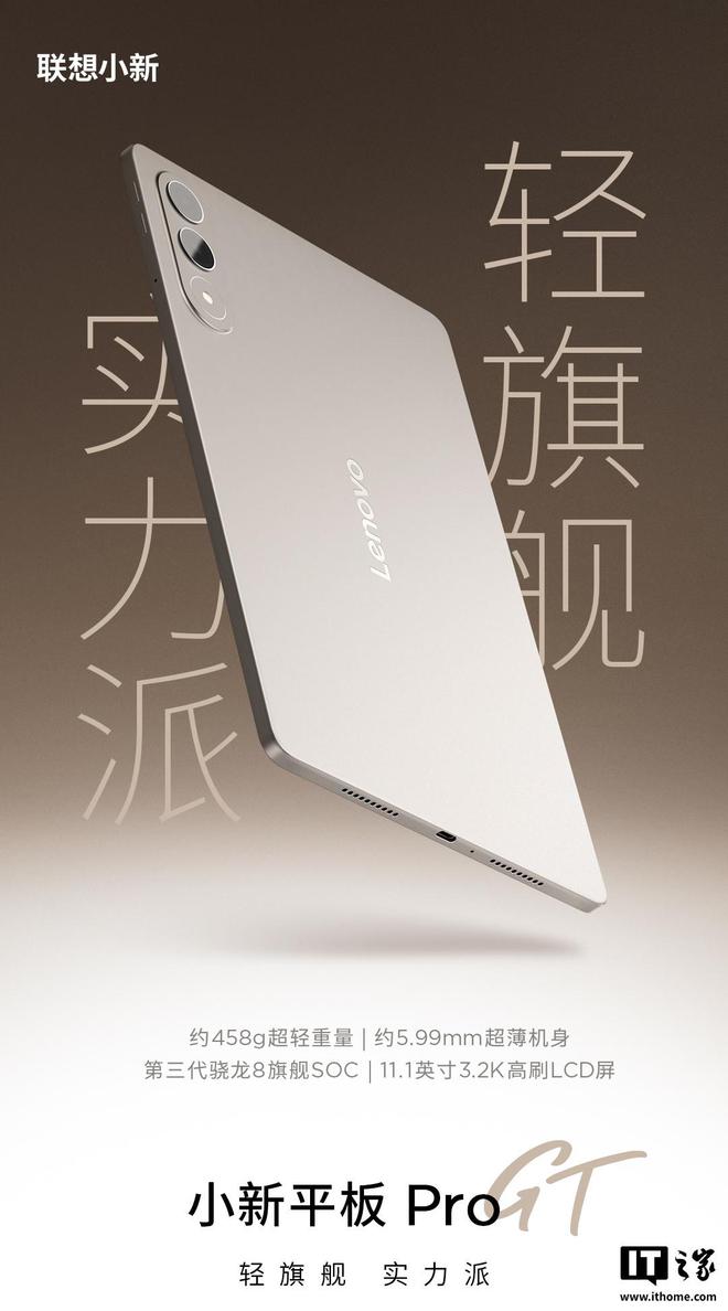 IT之家 7 月 8 日消息,联想小新今日预热小新平板 Pro GT。新品确认搭载第三代骁龙 8 旗舰 SOC、配备 11.1 英寸 3.2K 高刷 LCD 屏幕。
