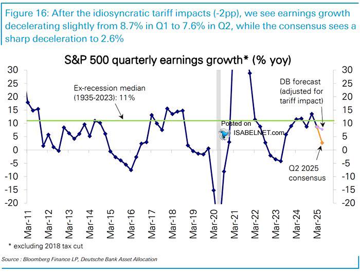 德意志银行预计,由于关税,标普500指数的EPS将出现温和放缓,但会好于市场预期。