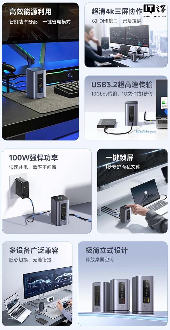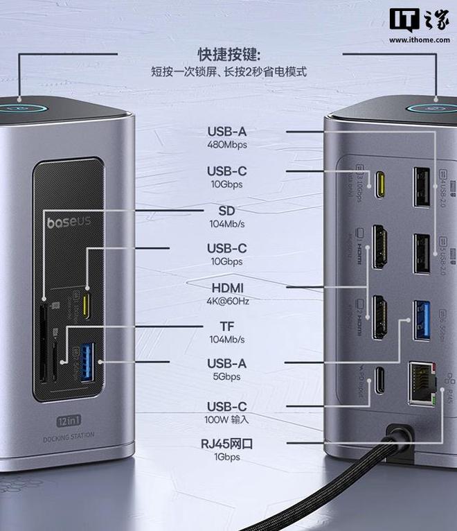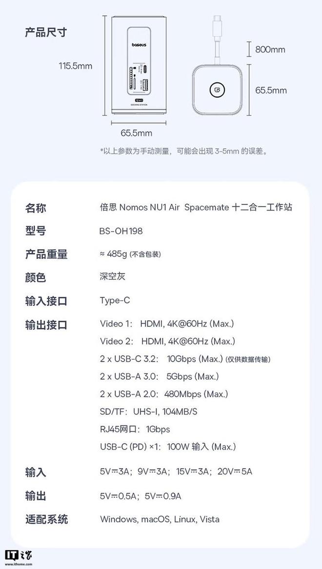 IT之家 7 月 13 日消息,倍思现已在京东上架一款Nomos NU1 Air 12合 1拓展坞,整合 SD / TF 卡槽、USB-A / C、HDMI、RJ45 网口等接口,定价为779 元。