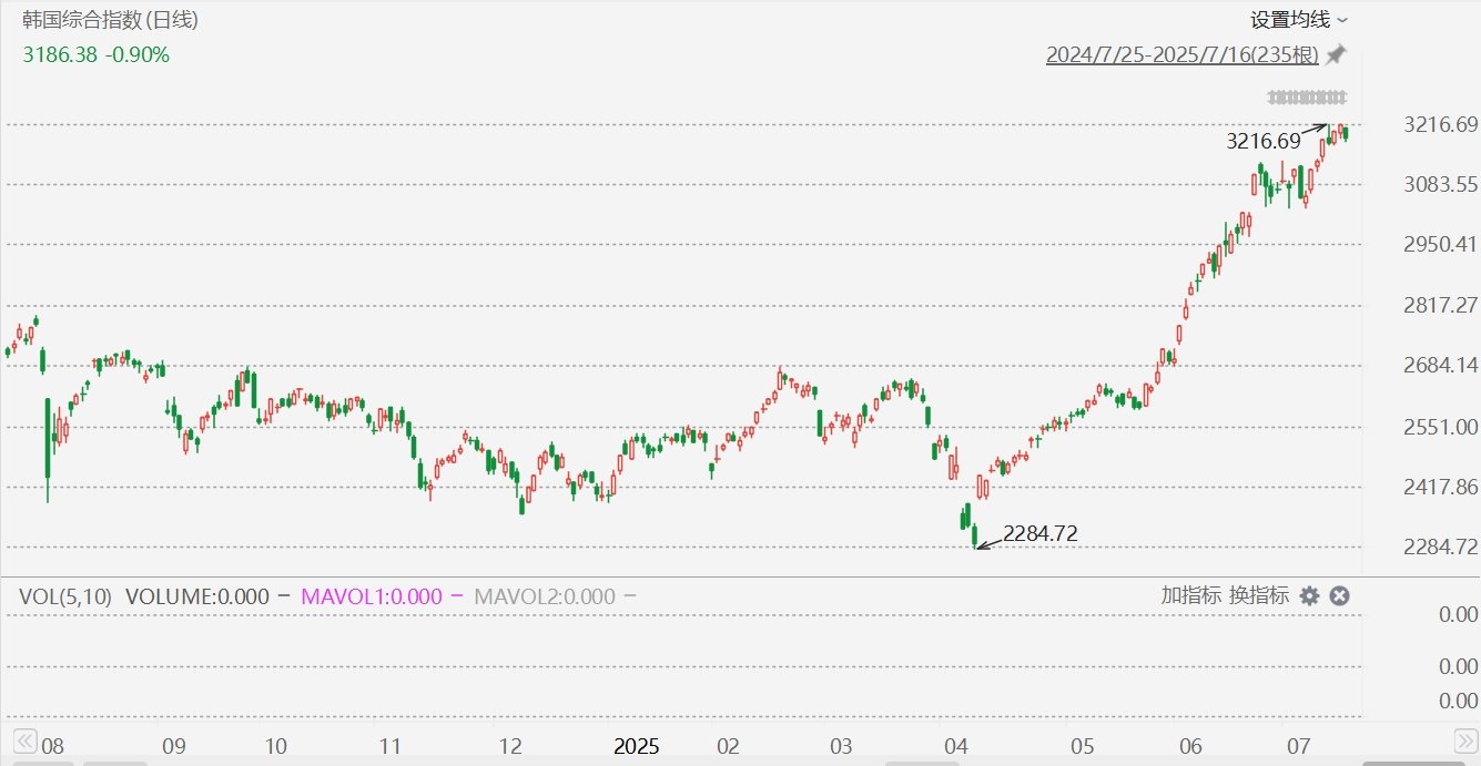格隆汇7月16日|韩国综合指数收盘下跌28.9点,跌幅0.9%,报3186.38点。