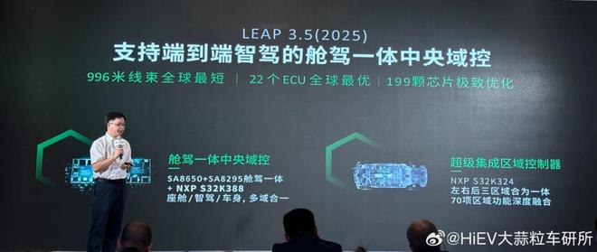 零跑在这一代Leap 3.5的架构上,已经采用了舱驾一体的中央域控设计,其中央计算单元集成了一颗骁龙8650、一颗骁龙8295以及一颗恩智浦的S32K,从而实现座舱、辅助驾驶、车身的多域合一。