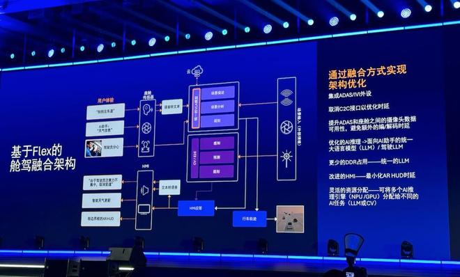 图片来源:HiEV拍摄骁龙8797集成了高通自研的Oryon CPU,CPU算力达到560K DMIPS;GPU算力最高达到8.1 TFLOPS;基于异构算力以及强大AI性能,8797能够支持舱驾融合应用,以及前沿的VLA(视觉-语言-动作模型)上车。