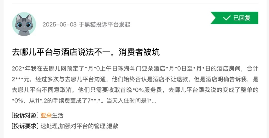 此外,在黑猫投诉上,关于“亚朵酒店”一词相关投诉有超千条,其投诉关键词多为噪音、卫生差、不给退款、隐私泄露等。