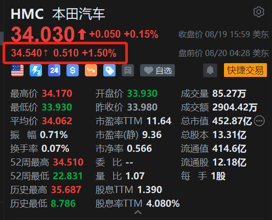 美股异动|本田汽车盘前涨1.5% 在印度成立新公司开展金融业务