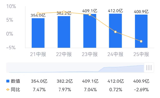 众多网红站台一款单品,在“泡面界”并不常见,背后折射出康师傅的焦虑——根据其发布的2025年半年报,康师傅控股营收增速下降2.69%,为近五年来首次下滑。而在此前的几年中,其增速也一直在放缓。