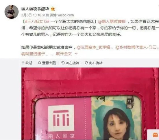 按照翁淑华的描述,十几年前,夫妻二人共同打拼创立公司,曾是丽人丽妆销售行政总监的翁淑华,公司发展日渐稳步之后,在丈夫的劝说下回家当起了全职太太。
