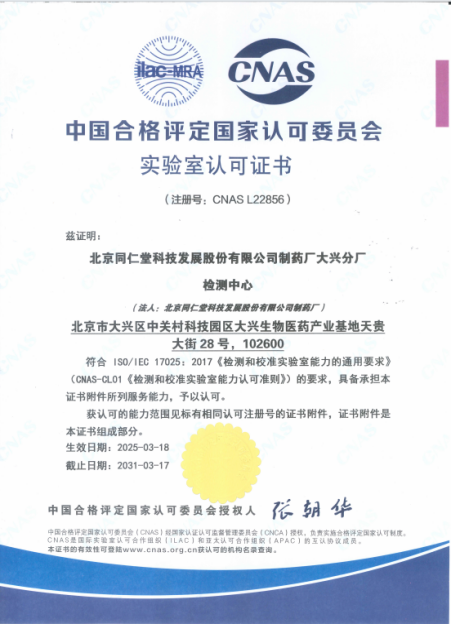 在科技公司大兴分厂、亦庄分厂检测中心,CNAS认证标识熠熠生辉。两家分厂检测中心成功获得中国合格评定国家认可委员会(CNAS)的认可资质。