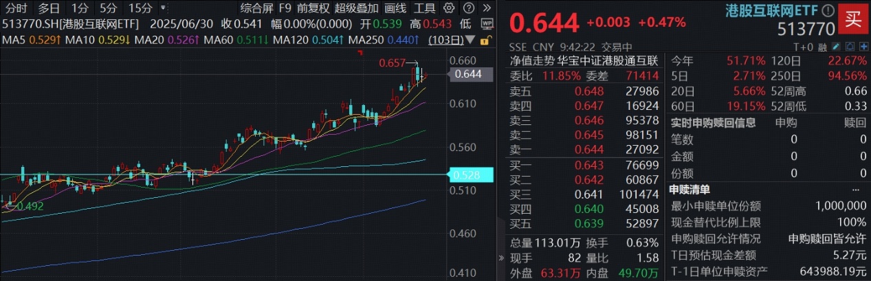港股互联网ETF(513770)最新规模已突破110亿元,创历史新高;年内日均成交额近6亿元,支持日内T+0交易,不受QDII额度限制,流动性佳!提醒:近期市场波动可能较大,短期涨跌幅不预示未来表现。请投资者务必根据自身的资金状况和风险承受能力理性投资,高度注意仓位和风险管理。