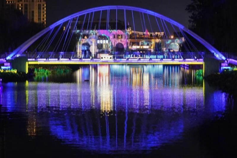 亮马河文化经济带是本届灯光消费季主会场。消费季期间,亮马河水上、岸边延伸至朝阳公园内都将被璀璨光影点亮。届时市民游客将可以欣赏到科技感十足的“蓝鲸”与“飞马”带来的水上互动表演,以及BBC Earth系列视听音乐会、英国动漫亲子剧《小羊肖恩》《饮歌》香港电影金曲交响音乐会等精彩演出。
