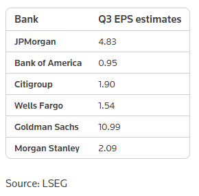 高盛第三季度每股收益预计将同比增长约31%,主要得益于投行业务和交易部门的反弹。市场将关注这些增长是否具备可持续性。