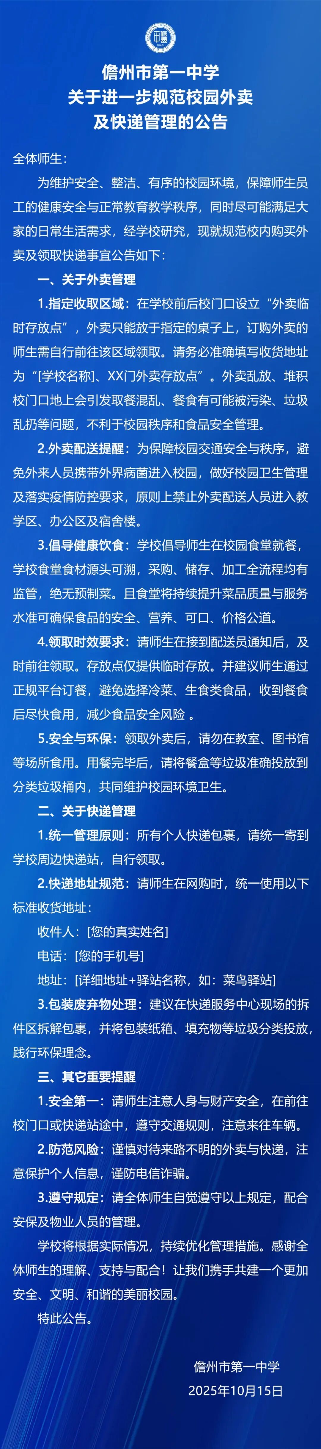 儋州市第一中学10月15日发布情况通报: