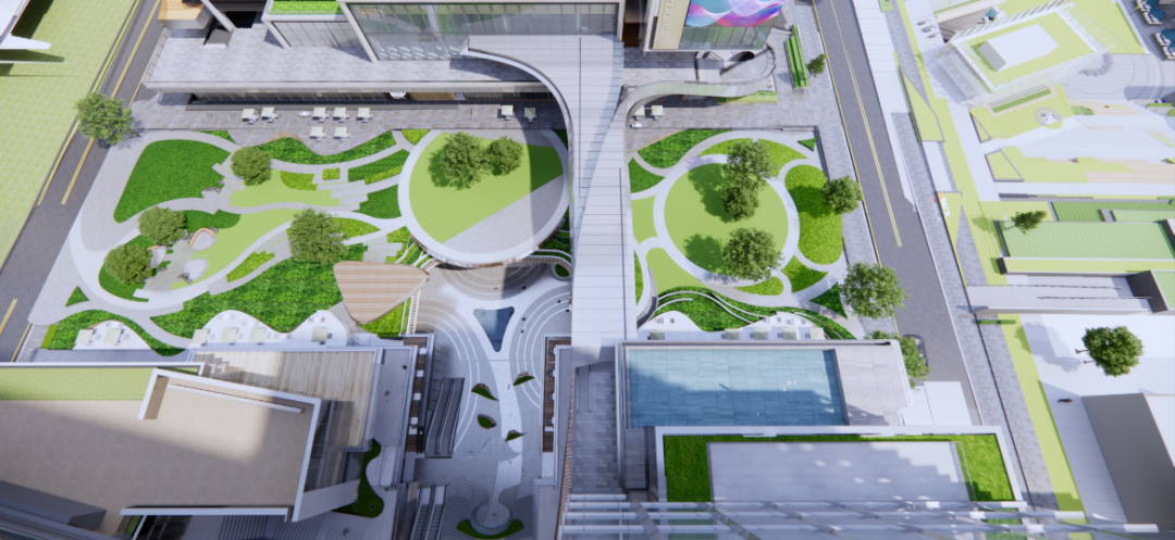 东莞CBD倡导“地上地下一体化”的设计理念。地上是空中串联起来的二层连廊,地下是复合畅通的地下空间。从地下、地面到空中,是一个24小时开放的有机整体。
