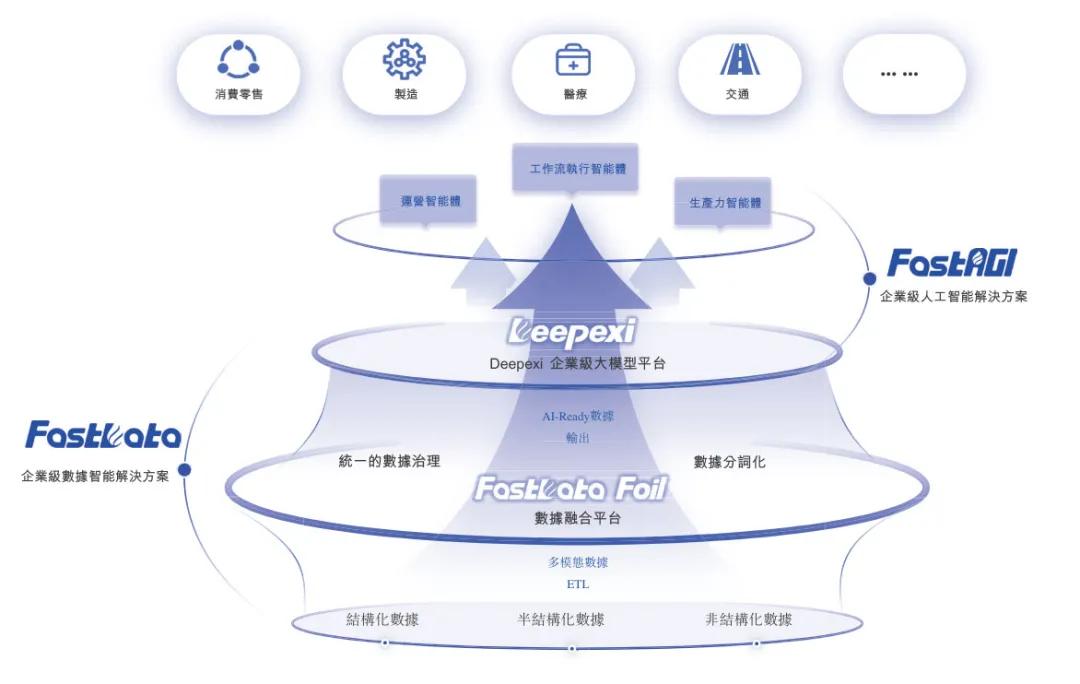 凭借AI-Ready的FastDataFoil数据融合平台及Deepexi企业级大模型平台两大基础设施,实现Agentic人工智能应用在企业的部署及实施。