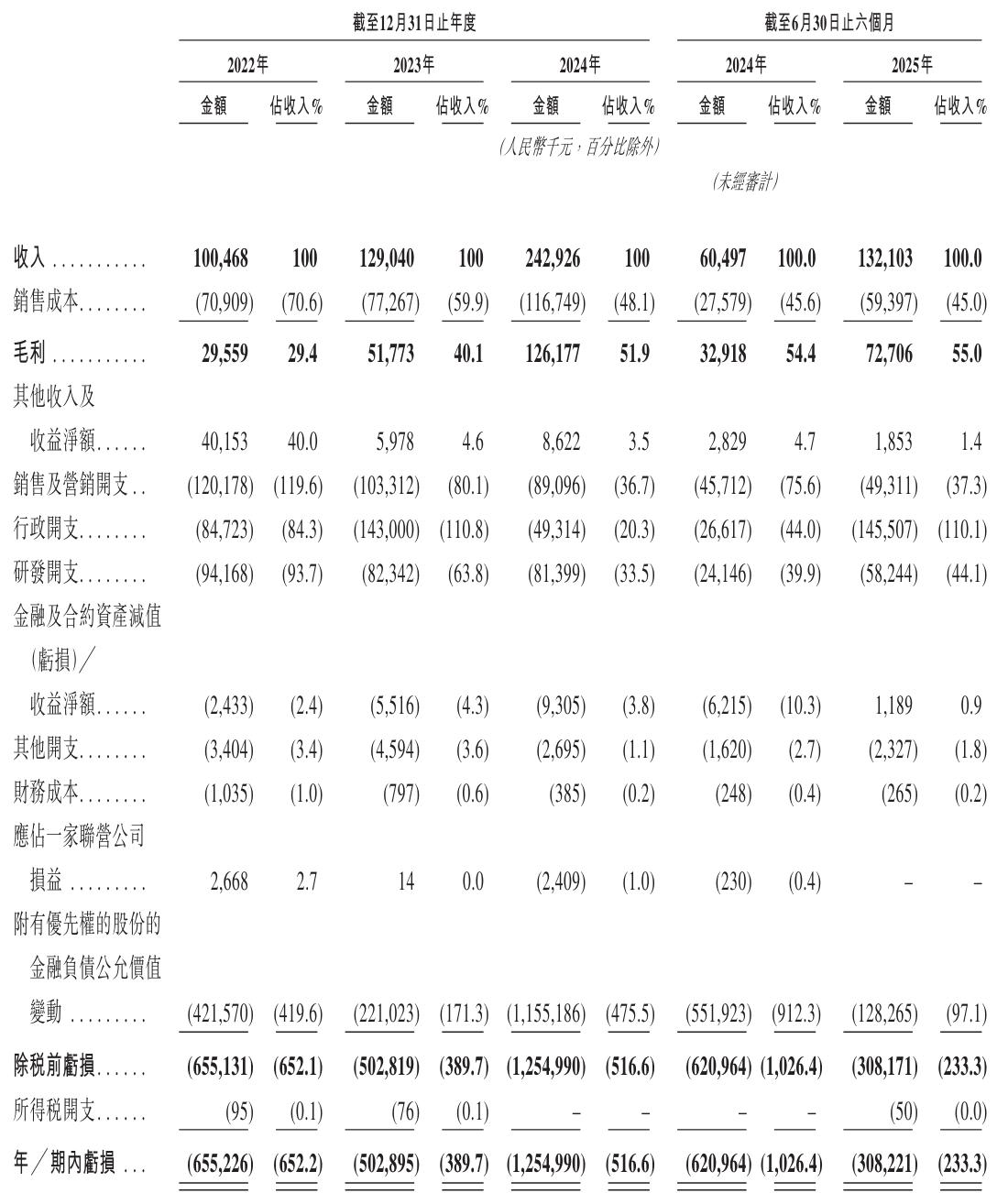 滴普科技2025年上半年营收为1.32亿元,毛利为7271万元,毛利率为55%,期内亏损为3.08亿元。