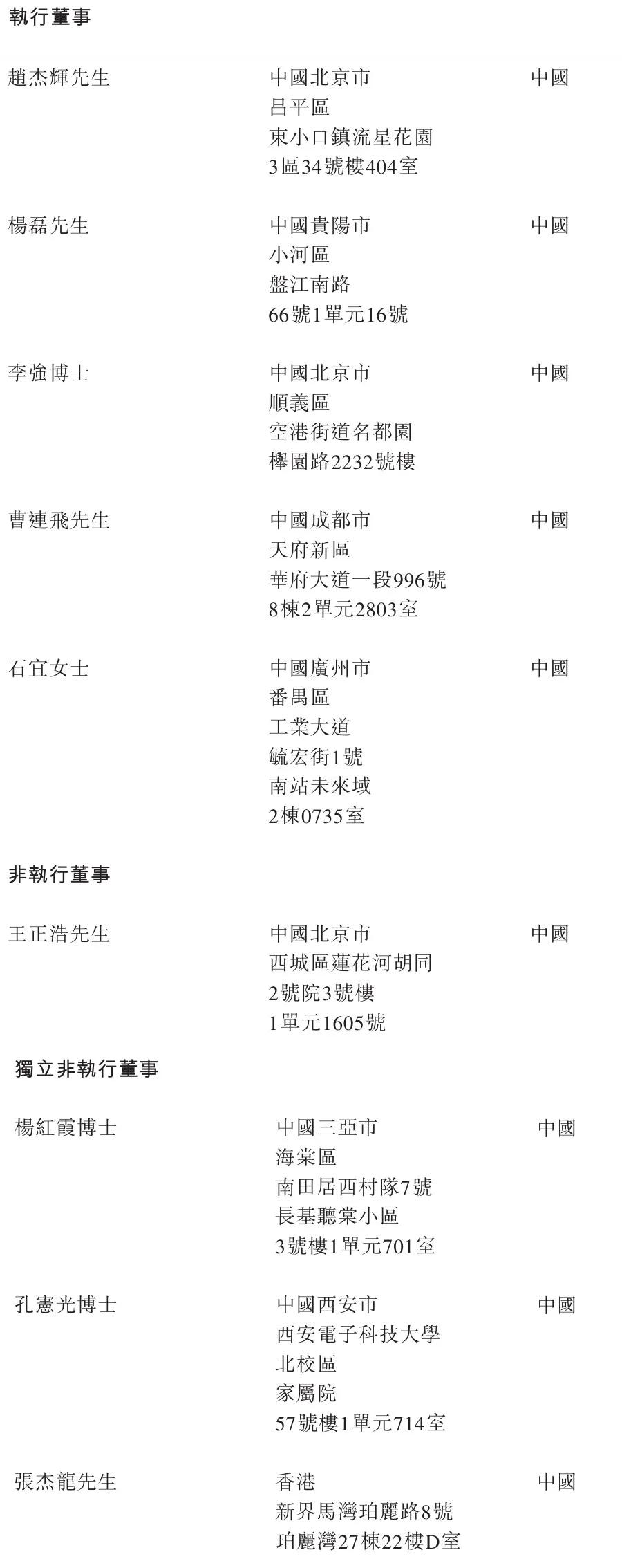 滴普科技执行董事分别为赵杰辉、杨磊、李强博士、曹连飞、石宜女士;非执行董事分别为王正浩,独立非执行董事分别为杨红霞博士、孔宪光博士、张杰龙。